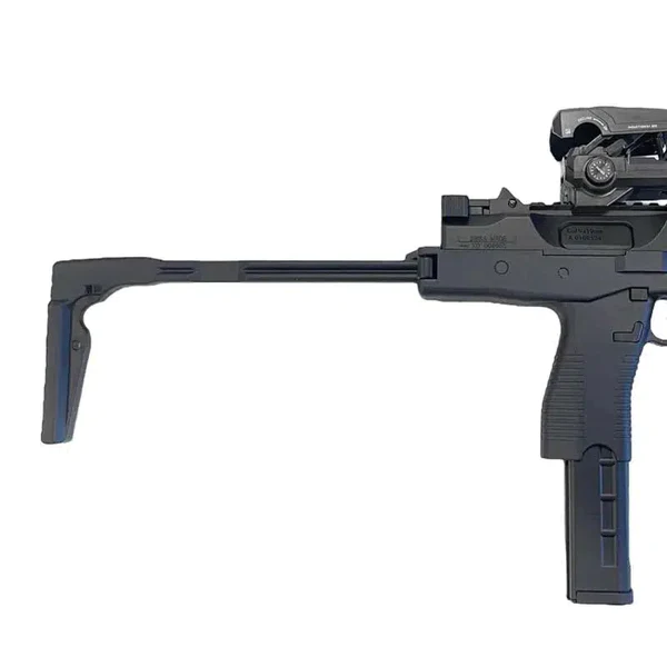 La nueva versión tiene carcasas completamente negras, lo que hace que la apariencia del fusil sea realista. Está equipado con una caja de cambios de polímero, un cargador de 100 balas y una culata plegable.